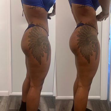 A: You can expect a 19-23% permanent decrease of fat in the abdomen, as well as a 16% increase in the muscle fibers. For the butt lift, you can expect a 4-4.5cm lift while also increasing the look of volume in the midsection of the buttocks.